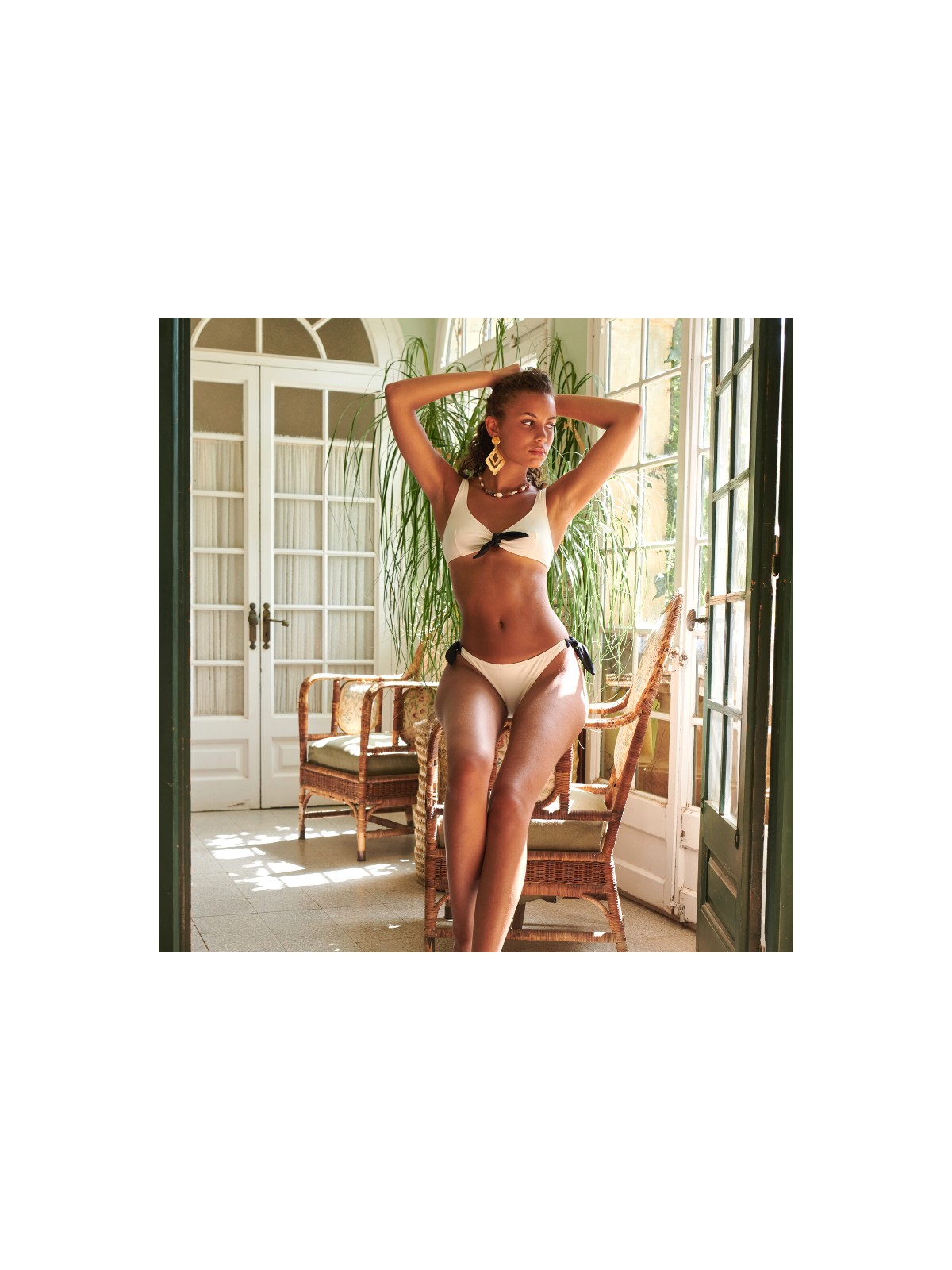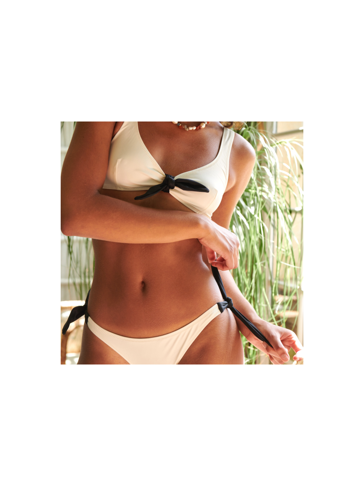 • Swimsuit top • Model embellished with knots. • More or less curved neckline • Without underwiring for a sensation of total lightness • Medium sustain • Suitable from cup A to E • Double